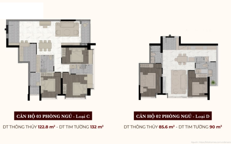 | Căn hộ 2 Phòng ngủ | 65 – 78 | 90 – 105 | 5.9 – 8.2 tỷ |