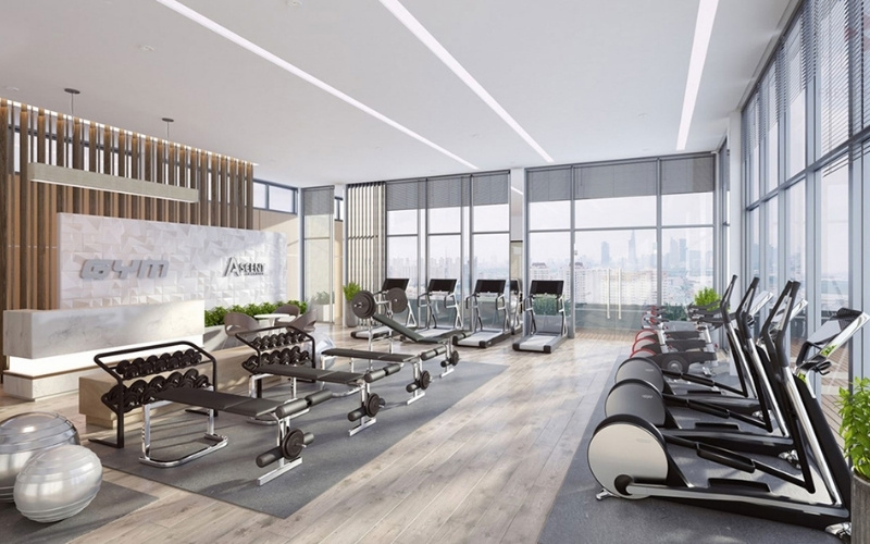 • Tầng 2: Bố trí Phòng Gym được trang bị máy móc hiện đại.
