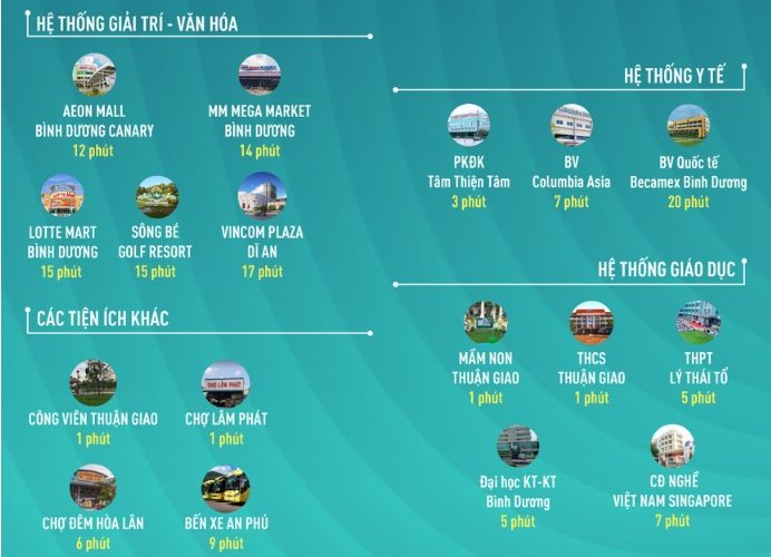 - Aeon Mall Bình Dương Canary cách dự án 5,1km.