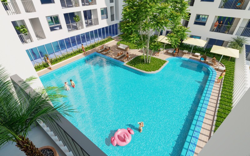 - Hồ bơi tràn bờ được thiết kế theo tiêu chuẩn 5 sao là nơi thư giãn và tái tạo năng lượng lý tưởng.