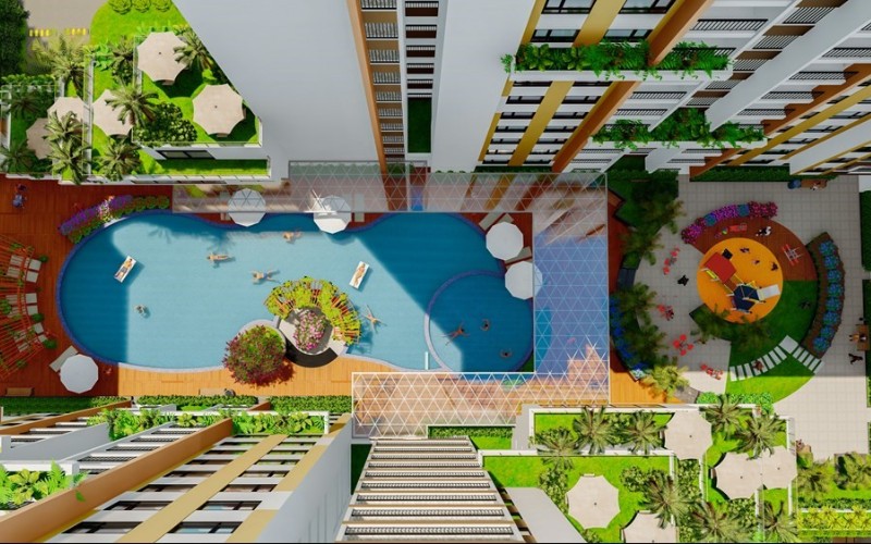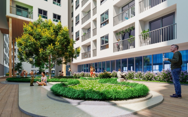 - Công viên cây xanh, vườn thiền và vườn dạo bộ mang đến không gian xanh mát và bầu không khí trong lành.
