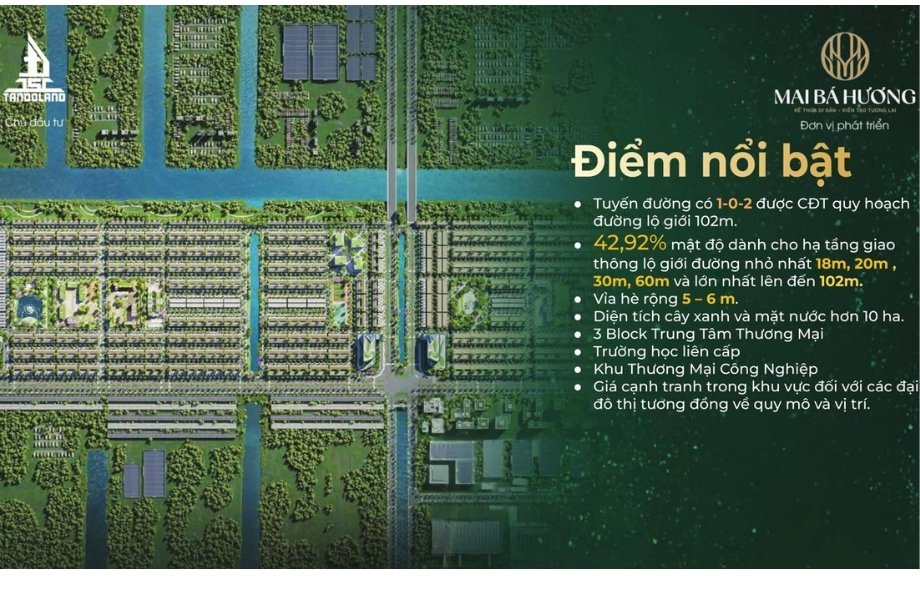 Dự án khu dân cư Mai Bá Hương có tổng quy mô lớn lên đến gần 148 ha (chính xác là 146,8ha), được đầu tư và phát triển bởi Công ty Cổ phần Tandoland. Dự án được quy hoạch bài bản, hiện đại và được chia thành 4 giai đoạn phát triển theo tiêu chí “xanh – sạch – tiện nghi – bền vững”. Điểm nổi bật trong quy hoạch là việc áp dụng mật độ xây dựng thấp, dành nhiều diện tích để phát triển mảng xanh, công viên, hồ cảnh quan và đường dạo bộ, đảm bảo cư dân tận hưởng bầu không khí trong lành, mát mẻ quanh năm.