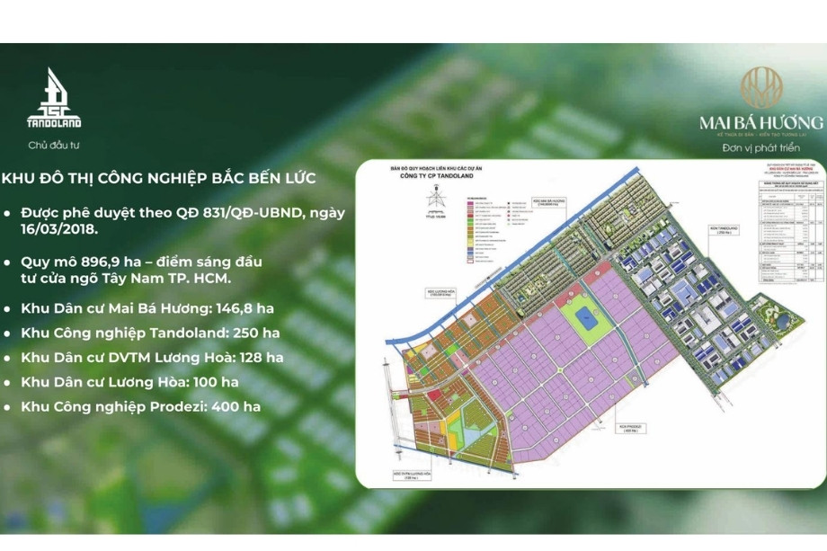Chiến lược của Tandoland là phát triển các dự án theo mô hình cụm khu đô thị – khu công nghiệp mới, trong đó KDC Mai Bá Hương cung cấp không gian sống hiện đại, tiện nghi cho đội ngũ chuyên gia và người lao động tại các KCN lân cận. Sự đồng bộ trong quy hoạch và cam kết pháp lý (đã có quy hoạch 1/500 và sổ riêng từng nền) là những yếu tố cốt lõi đảm bảo giá trị bền vững và niềm tin cho khách hàng.