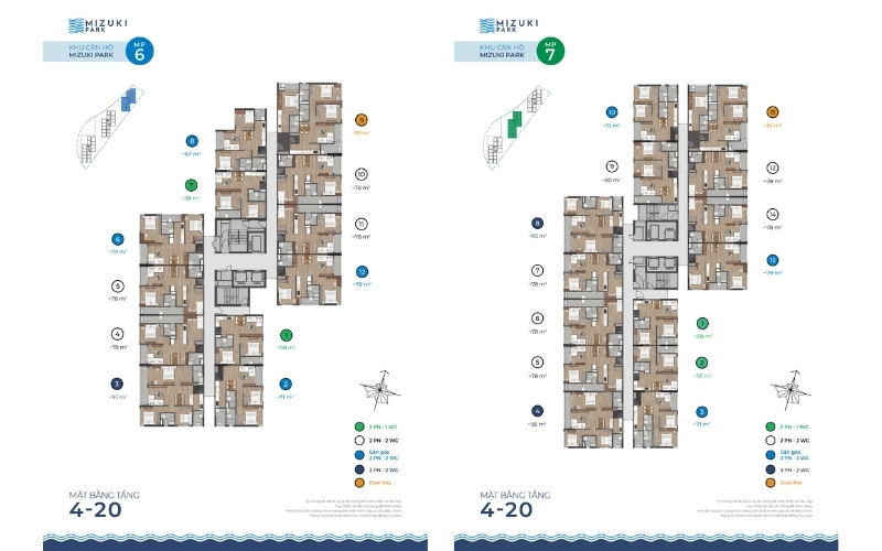 - Căn hộ Flora Mizuki: Gồm tổng cộng 10 Block (từ MP1 đến MP10) với tổng số 4.677 căn hộ, cùng 33 căn Shophouse Valora Mizuki.