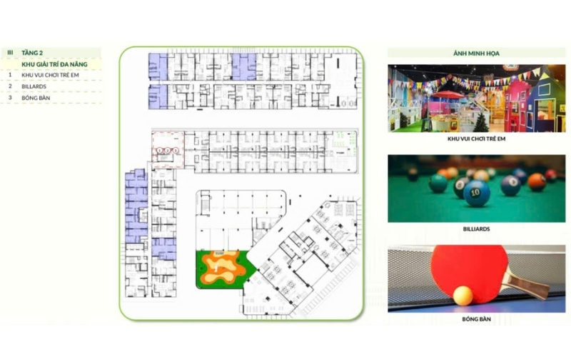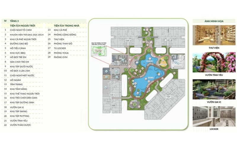 | Tiện ích | Trường mầm non và Tiểu học, Công viên, Trung tâm thể dục thể thao, Quảng trường, khu BBQ, thư viện, phòng SHCĐ, bể bơi… |