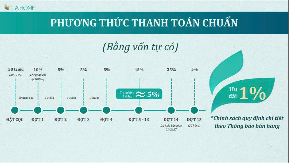 – Các đợt tiếp theo: Thanh toán theo tiến độ xây dựng thực tế của dự án
