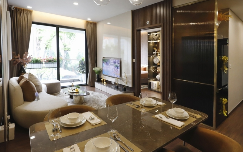 Các thiết bị bàn giao cơ bản bao gồm video call, tủ bếp, bếp điện từ, và thiết bị vệ sinh từ các thương hiệu chất lượng. Đối với các dòng sản phẩm cao cấp như Flora Panorama, thiết kế được nâng tầm theo phong cách nhiệt đới đương đại, khẳng định đẳng cấp xứng tầm chủ nhân.