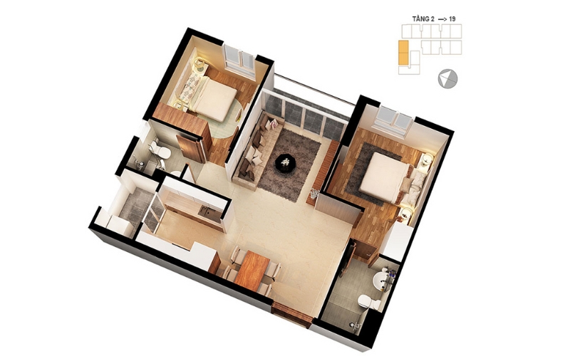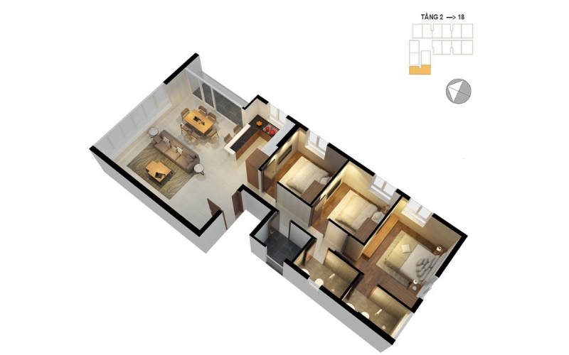 Tầng 3 – 18: Tầng căn hộ tiêu chuẩn, được thiết kế thông minh, tận dụng tối đa khí trời.