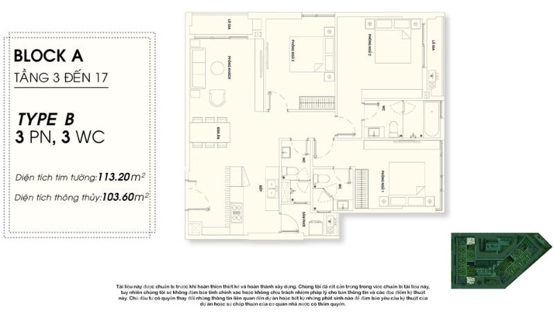 3 phòng ngủ 94m2 – 135m2 Từ 1.3 tỷ